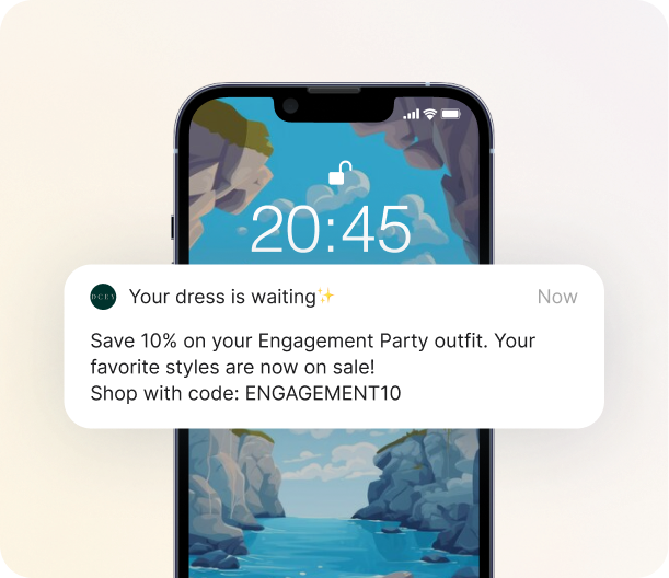 DCEY’s “Engagement & Wedding Dresses” category attracted consistent traffic. Users browsed the selection, but rental completions weren’t keeping pace with views. Without immediate, relevant follow-up tied directly to browsing behavior, interest signals weren’t converting at the rate their business model required.