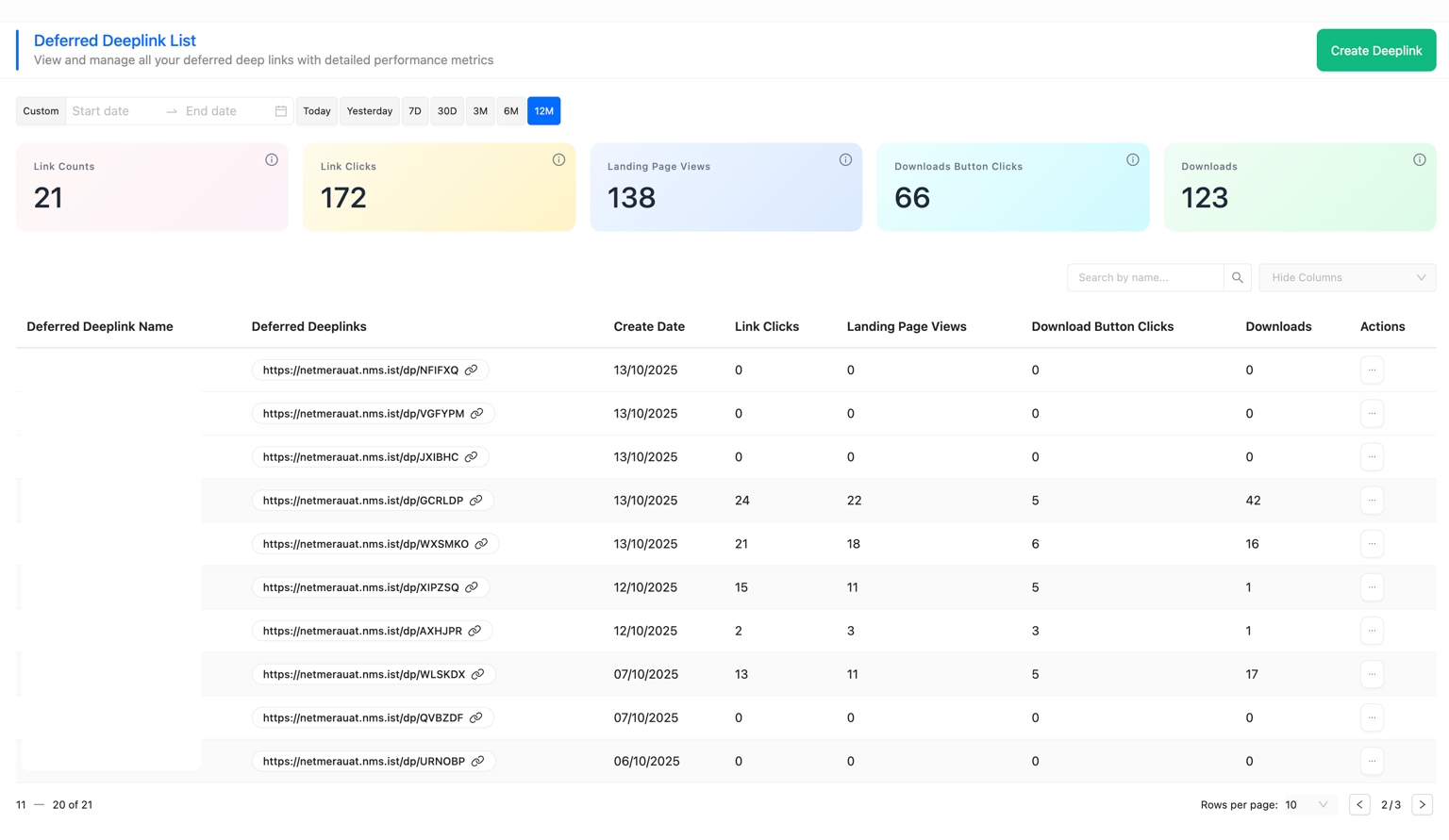 - Link Performance: Track total clicks on your deferred deep links across all campaigns